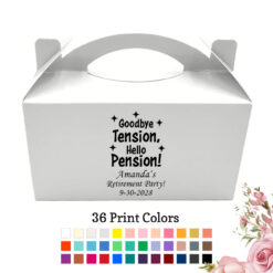 These personalized gable boxes are perfect for your themed parties and it will definitely get you lots of praise and admiration with their uniqueness. Offered in vibrant and dashing print colors, save with guaranteed low prices when you order wholesale gable boxes. Make your event memorable by presenting your guests with our large gable boxes. Our custom gable boxes are offered at a great price! Give our stylish boxes for guests at your party. These party packing are sure to be a hit at your party. Your guests will confirm that our personalized gable boxes are indeed great party ideas.