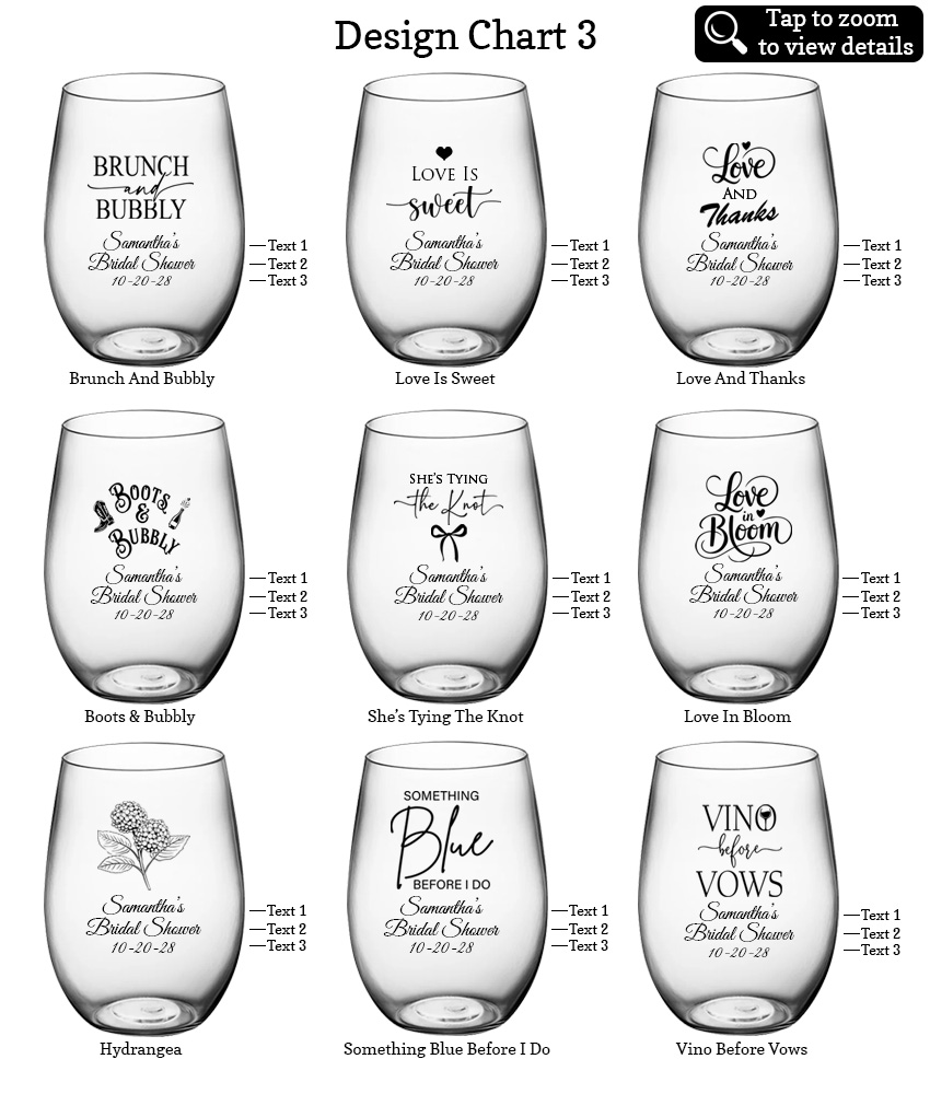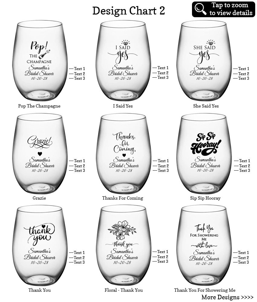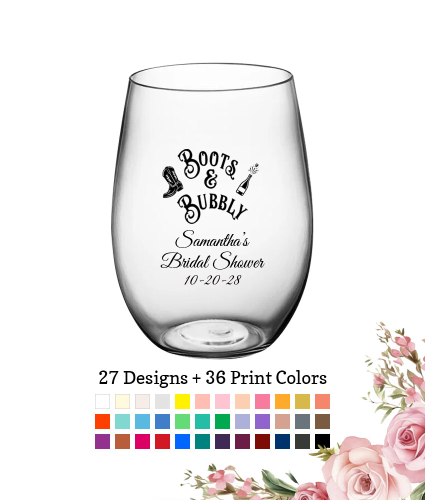 Create your own favor with these Personalized Bridal Shower Party Favors 16 oz. Large Plastic Stemless Wine Glasses – 27 Designs. There’s nothing quite like personalized favors with a touch of personality!