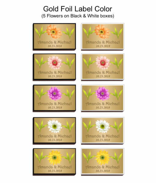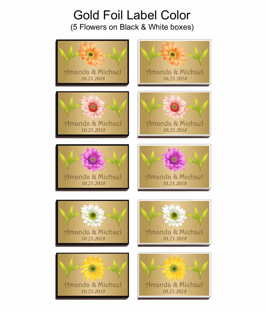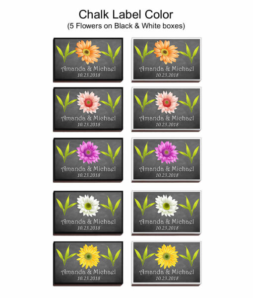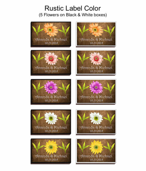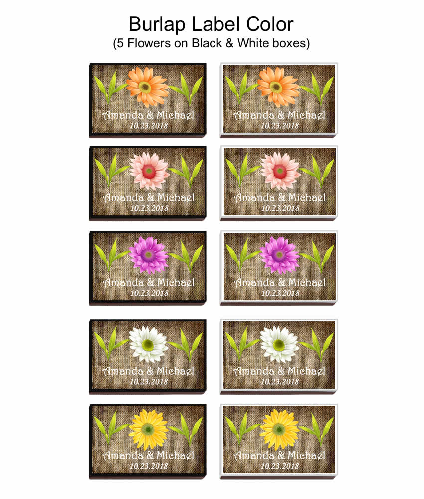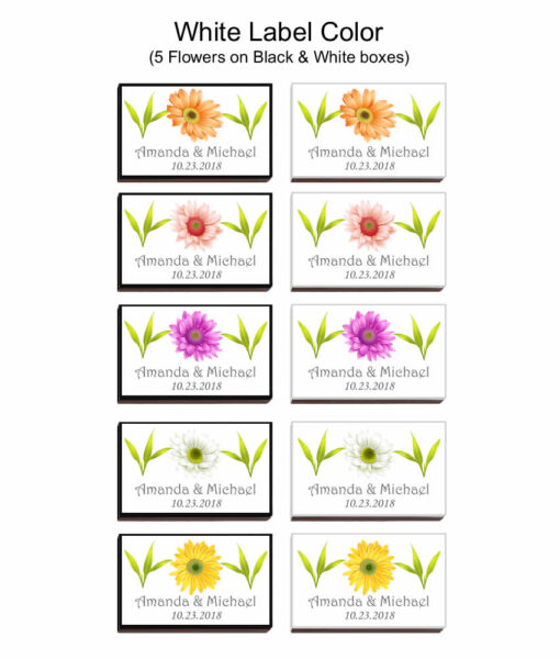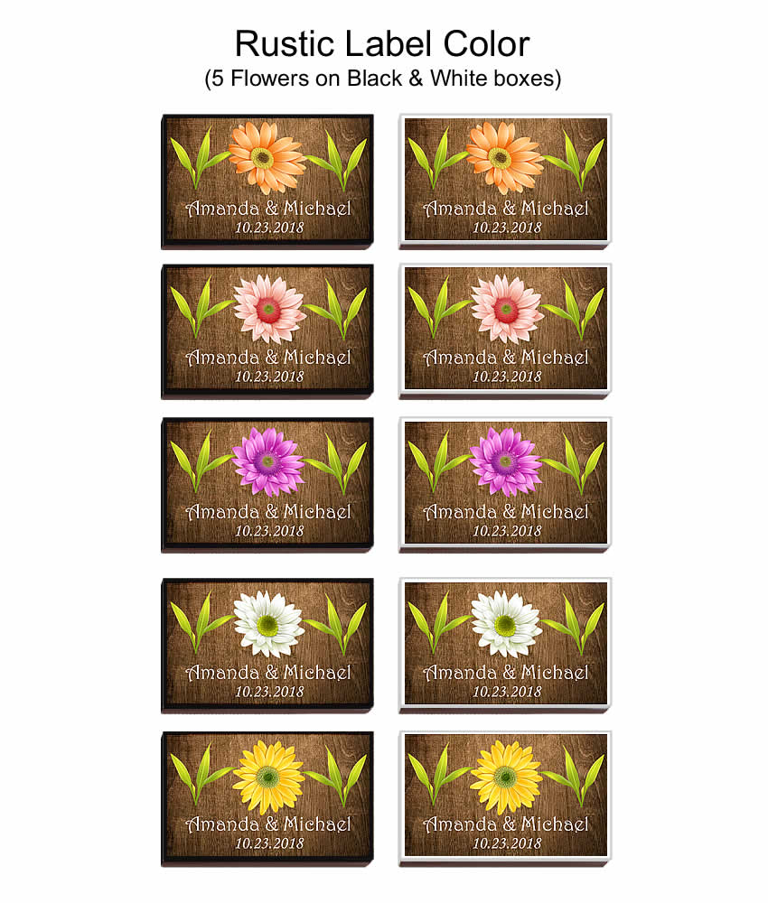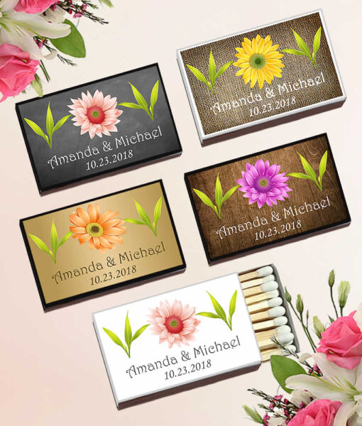 Custom matches. Each set contains 25 Custom Wedding Matches with all 5 Daisy Flower Colors Per Set.