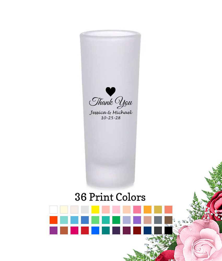 Create your own favor with these Custom 2 oz. Frosted Tall Shot Glass Shooter Glass Wedding Souvenirs Thank You. There’s nothing quite like personalized favors with a touch of personality!