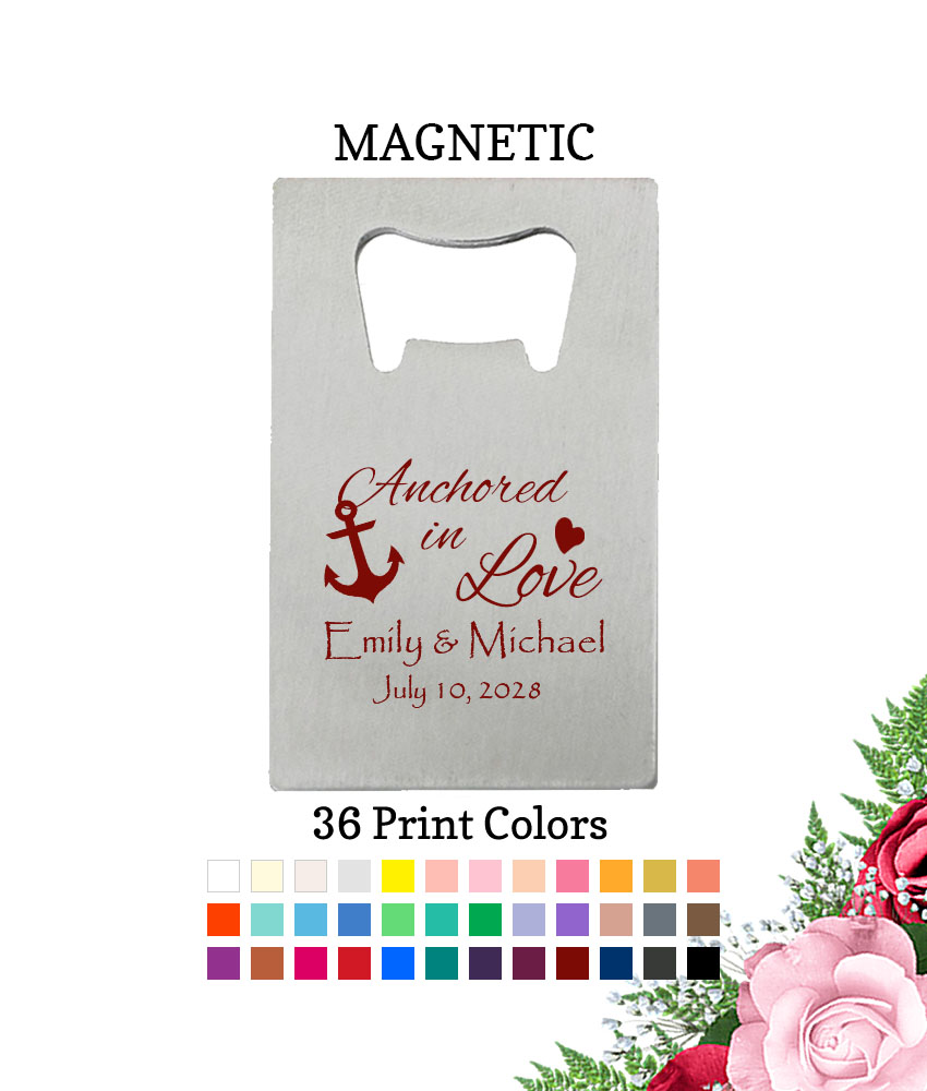Get your guests popping those caps with these Anchored In Love Magnetic Bottle Openers. This fun and practical gift is always associated with good times.