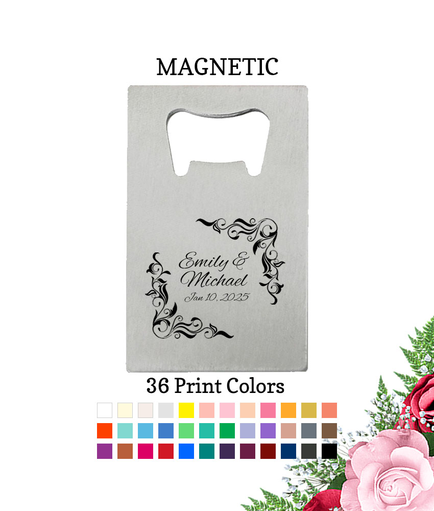Get your guests popping those caps with these Leaf Scroll Border Magnetic Bottle Openers. This fun and practical gift is always associated with good times.
