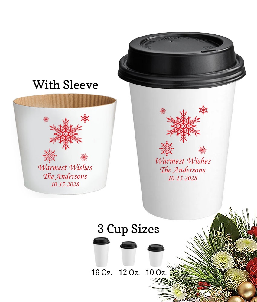 Serve your guests with your most popular hot beverages with this paper coffee hot cups with lids and sleeve – Snowflakes Design!