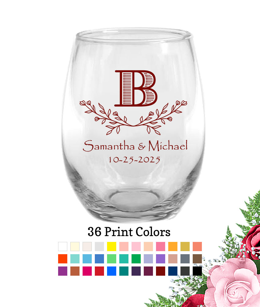 Leaf Monogram Custom 9 oz. Stemless Wine Glass – FREE Rush