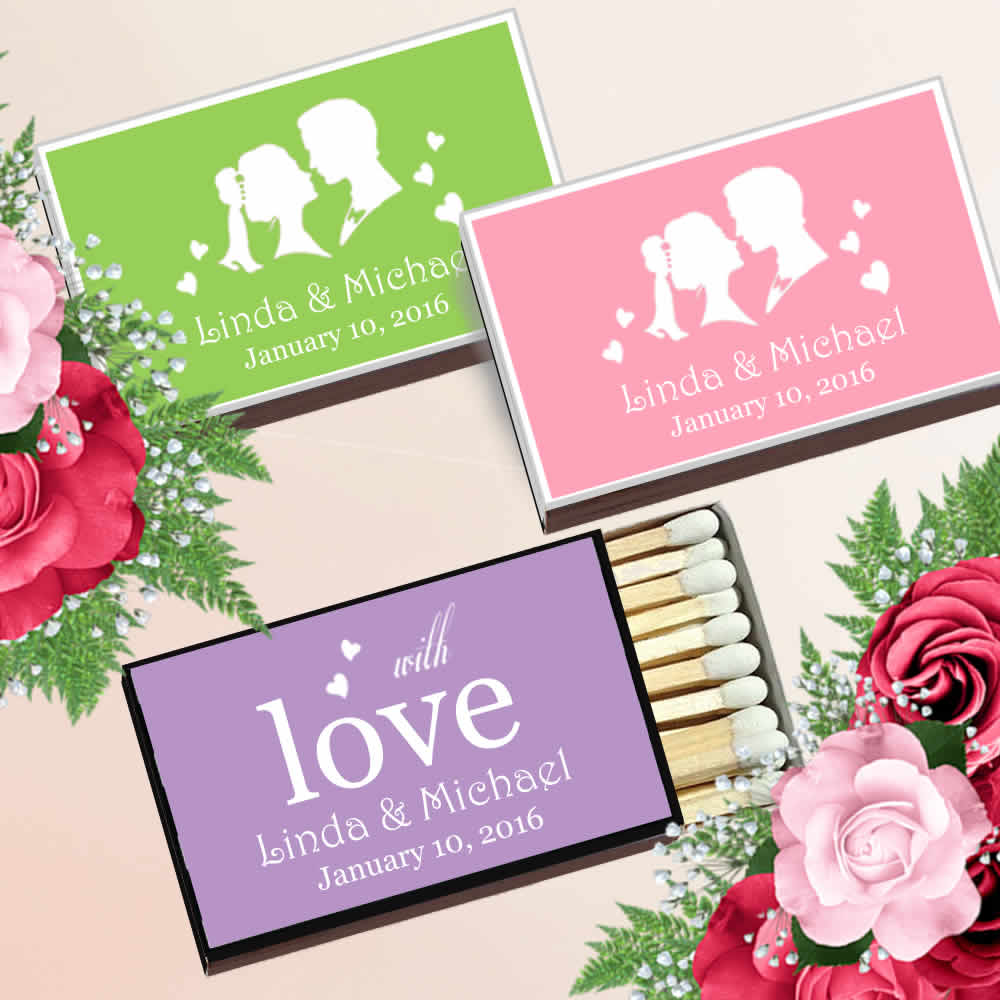 Wedding favor matches are the perfect way to light up your special day, without spending a fortune. Personalize your matches with a photo, or chose from a variety of fonts and colors. Custom wedding match boxes are a great way to make your guests feel like part of the wedding.