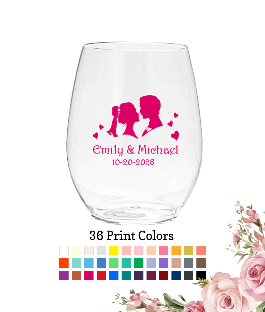 Personalized 10 oz. Plastic Stemless Wine Glasses Couple – FREE Rush