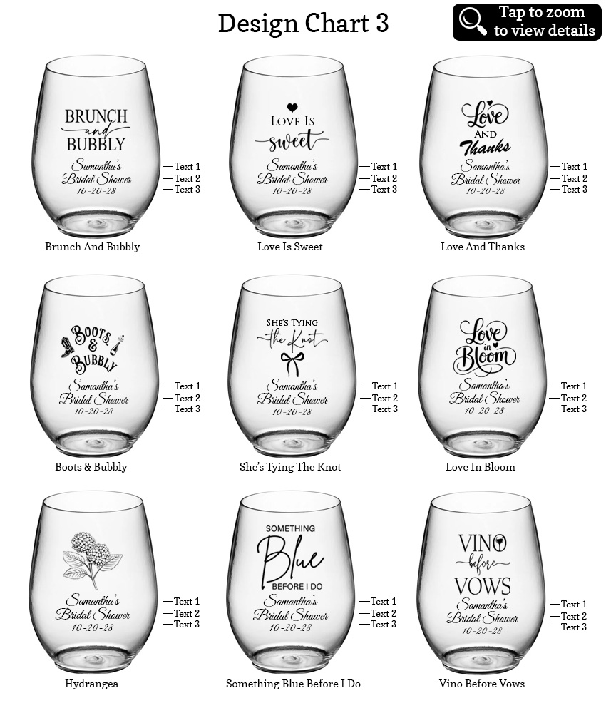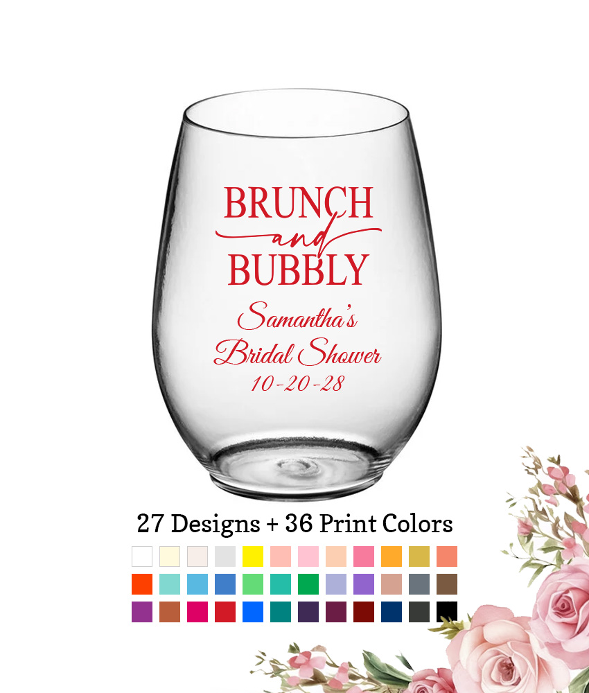 Create your own favor with these Personalized Bridal Shower Party Favors 10 Oz. Plastic Stemless Wine Glasses – 27 Designs. There’s nothing quite like personalized favors with a touch of personality!