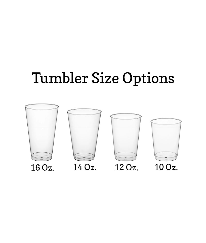 - Tumblers available in these sizes – 10 oz, 12 oz, 14 Oz. and 16 oz.