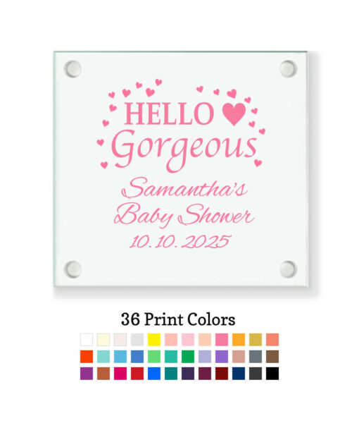 Create your own favor with these Hello Gorgeous Personalized Glass Coasters. There’s nothing quite like personalized favors with a touch of personality!