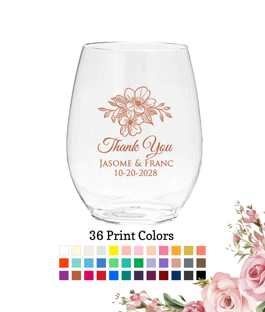 Make drinking fun and pretty with these Personalized 10 oz. Plastic Stemless Wine Glasses – Floral