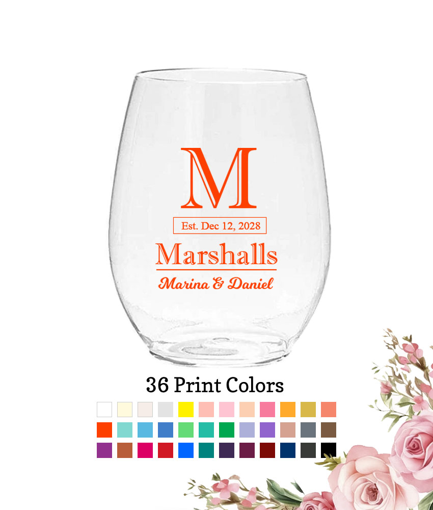 Make drinking fun and pretty with these Personalized 10 oz. Plastic Stemless Wine Glasses – Last Name Monogram.