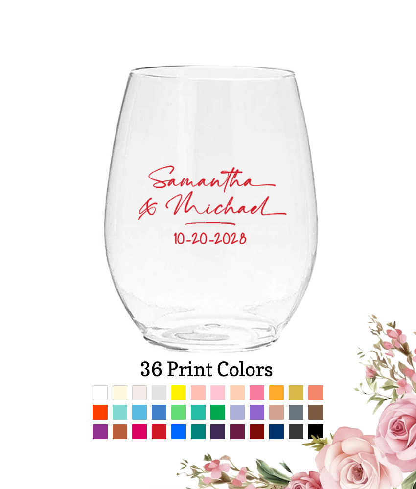Make drinking fun and pretty with these Personalized 10 oz. Plastic Stemless Wine Glasses – Names Signature