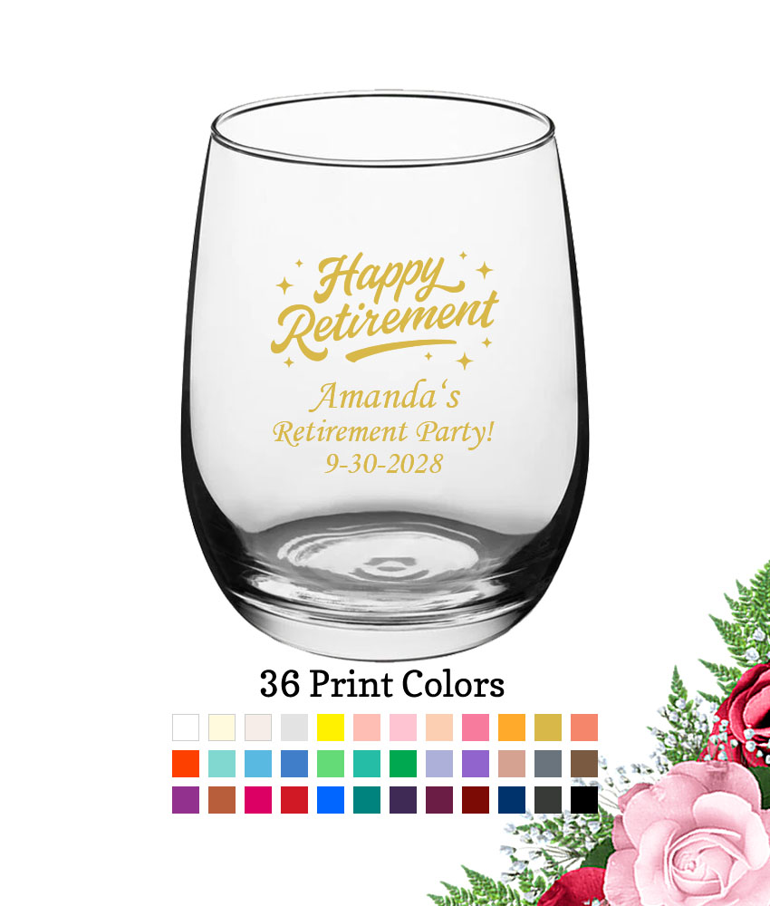 Make drinking fun and pretty with these Personalized Retirement Party Favors 15 oz Large Wine Glasses Happy Retirement