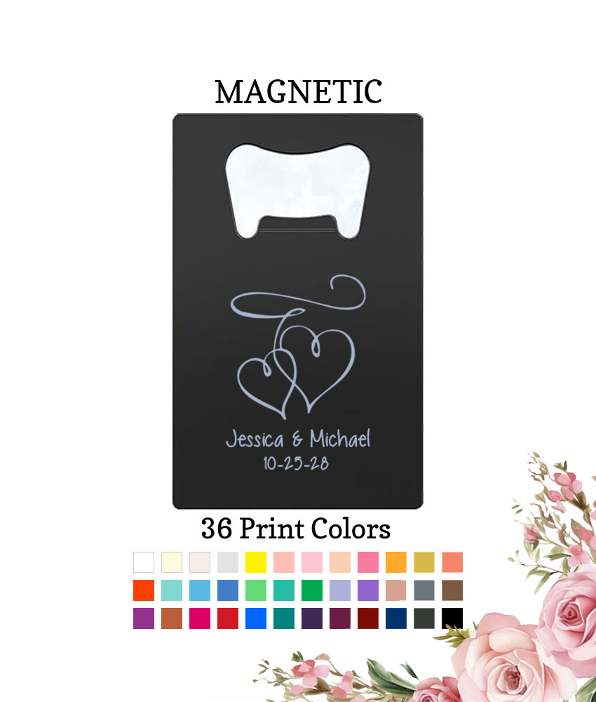 Personalized Wedding Black Magnetic Credit Card Bottle Openers Interlocking Hearts – FREE Rush