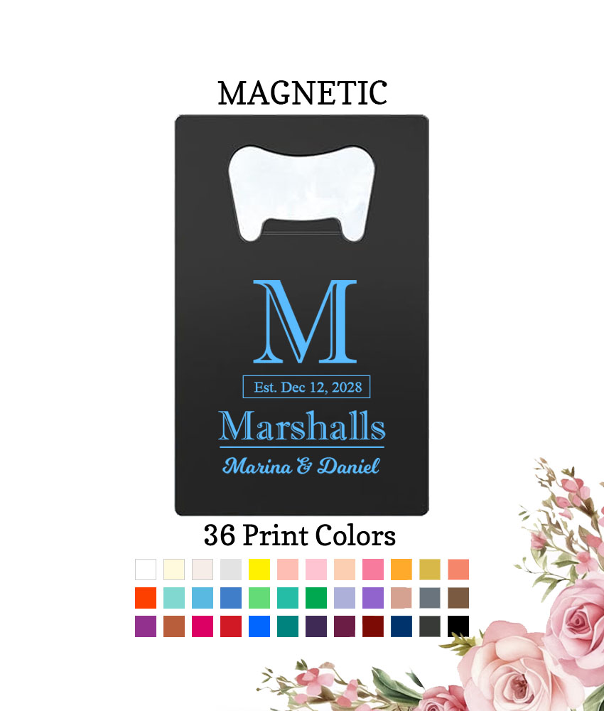 Personalized Wedding Black Magnetic Credit Card Bottle Openers Last Name Monogram – FREE Rush