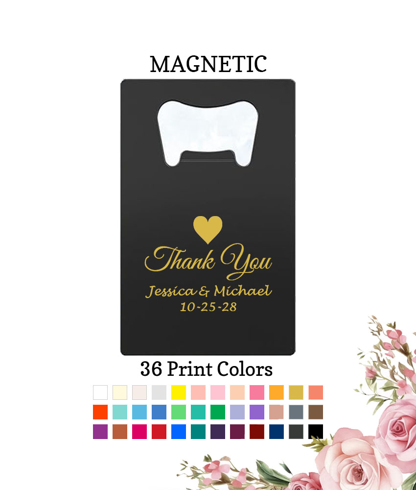 Get your guests popping those caps with these Personalized Wedding Black Magnetic Credit Card Bottle Openers Thank You. This fun and practical gift is always associated with good times.
