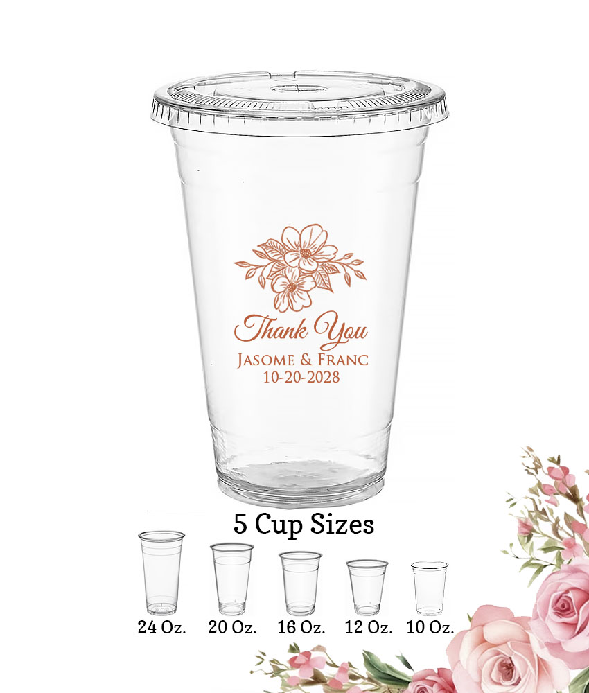 Serve your guests with your most popular cold beverages with this Personalized Wedding Clear Plastic Cups With FREE Lids – Floral