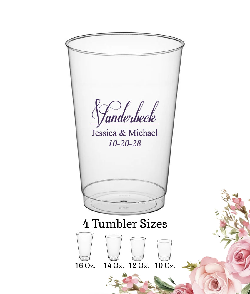 Serve your guests with your most popular beverages with this durable Personalized Wedding Clear Sturdy Plastic Tumbler – Last Name Script.