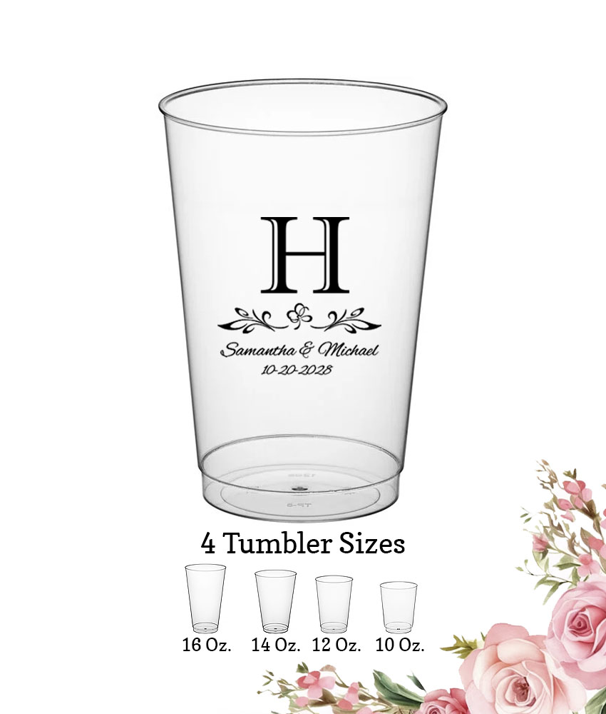 Serve your guests with your most popular beverages with this durable Personalized Wedding Clear Sturdy Plastic Tumbler – Scroll Monogram.