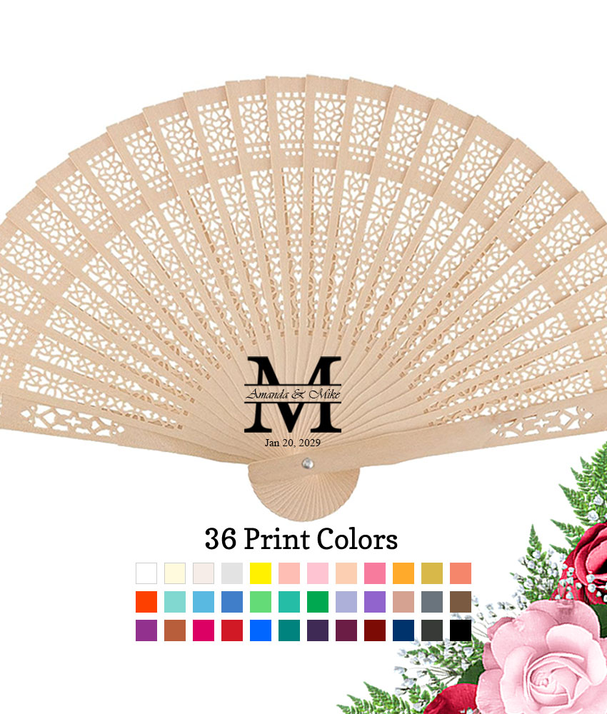 Personalized Wedding Fans Sandalwood Fans Initial Monogram.