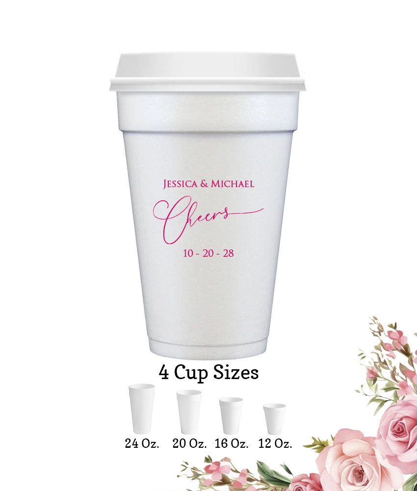 Serve your guests with your most popular hot or cold beverages with this Personalized Styrofoam Cups With FREE Lids – Cheers.