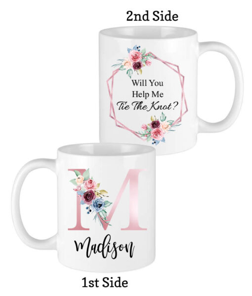 Coffee mugs make perfect bridesmaid gifts! Gift your bridal party with adorable memorable and fun bridesmaids coffee mugs! Personalized in their wedding party. If you are looking for a creative way to ask, “Will you be my bridesmaid?”, then we have some great mugs that can be purchased separately or in a cute gift bag. Check out our bridesmaid mug selection for the very best in unique or custom mugs. A personalized mug is a great gift idea for the bride and groom that loves their morning coffee or tea! We offer many unique designs. The perfect gift for your coffee connoisseur, trendy “Will you be my Bridesmaid?” coffee mug is perfect for filling to the brim with freshly brewed coffee or another drink. Our custom mugs are offered at a great price!