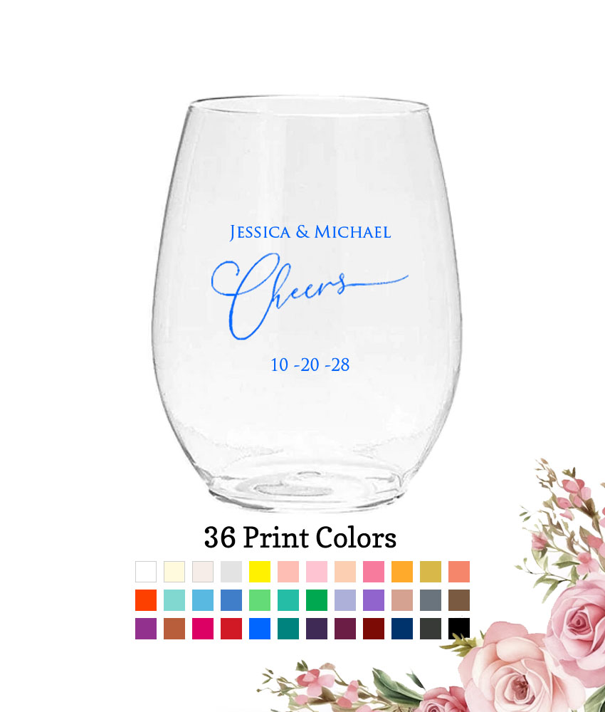 Make drinking fun and pretty with these Personalized 10 oz. Plastic Stemless Wine Glasses – Cheers