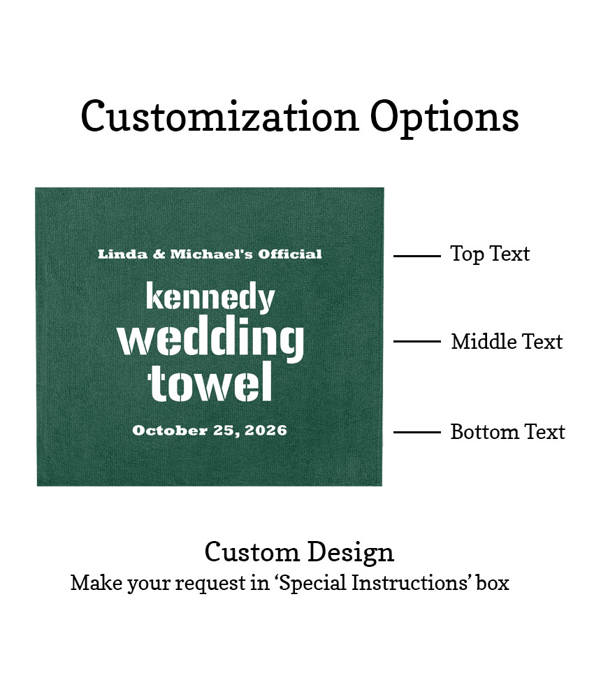 Check ‘How to Customize Towels’ tab to submit your order for the wedding towel.