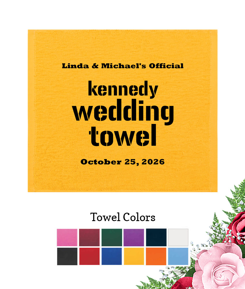 - Price includes one color PERMANENT PRINT on one side of the wedding towel.