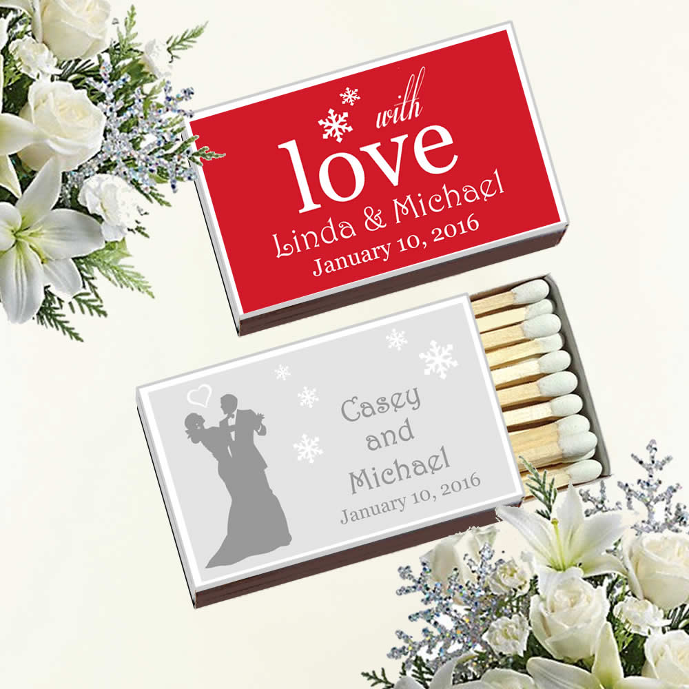 Wedding favor matches are the perfect way to light up your special day, without spending a fortune. Personalize your matches with a photo, or chose from a variety of fonts and colors. Custom wedding match boxes are a great way to make your guests feel like part of the wedding.